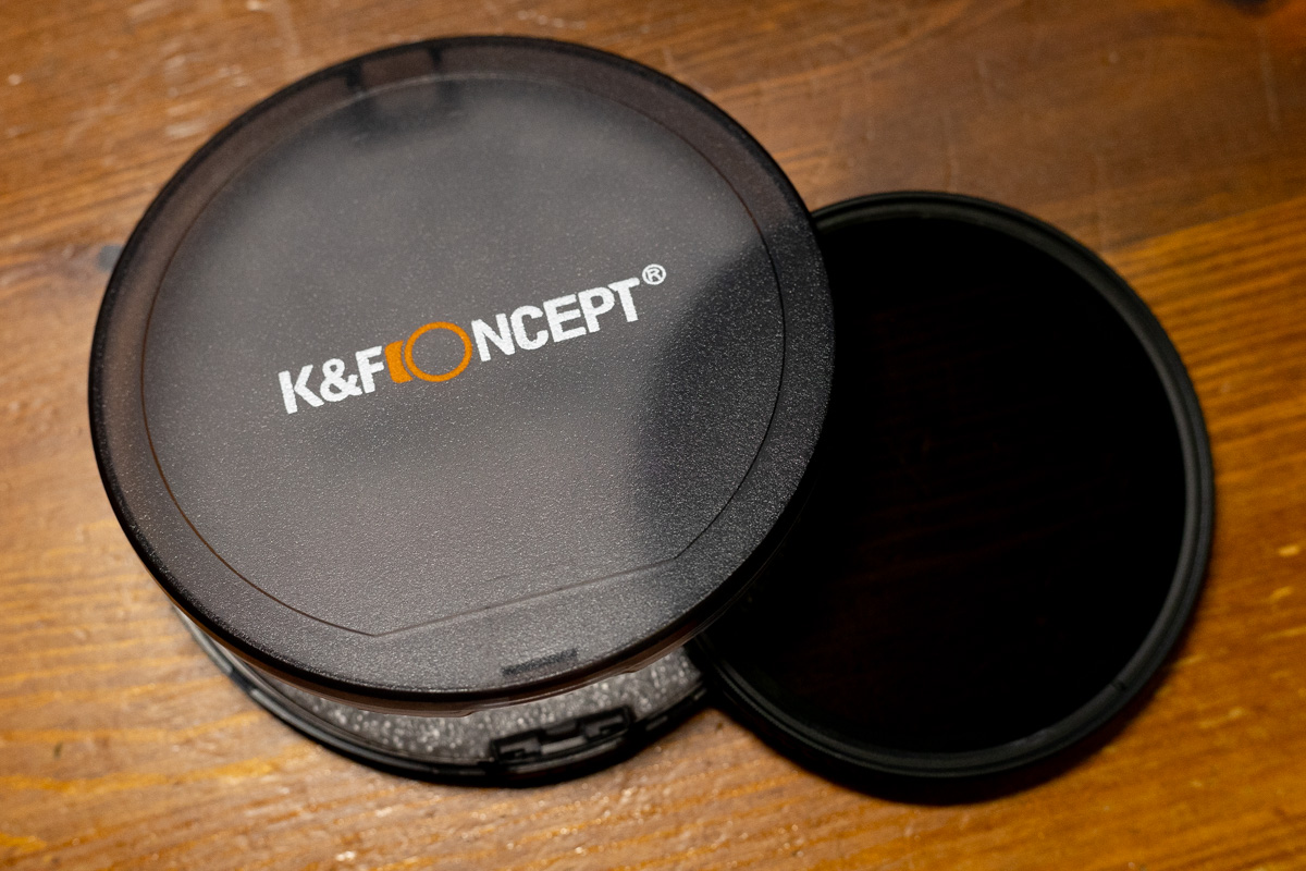 今回使ったのはK&F Concepotの「77mm ND2-ND32可変NDフィルター18層マルチコートガラス」、RF50mm F1.2L USMのフィルターサイズ77mm用です。