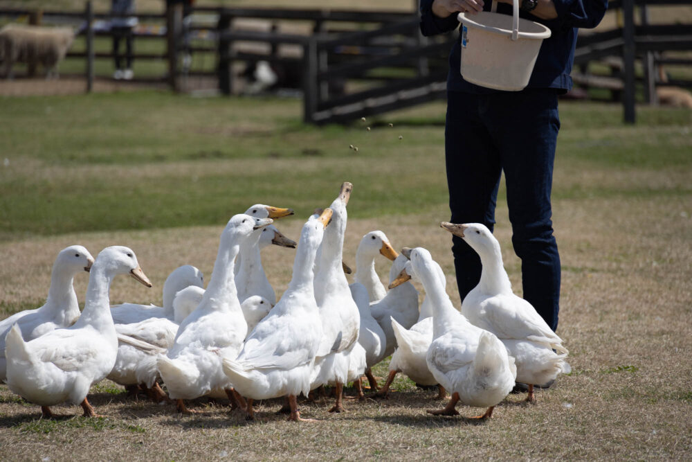 なにはともあれ、入口すぐのアヒルのお散歩へ。