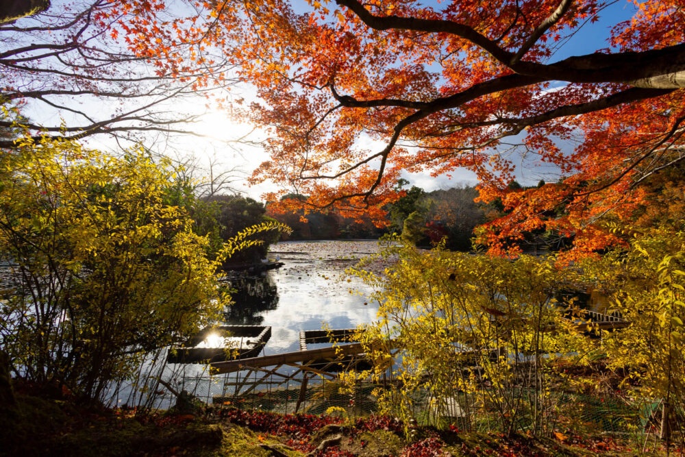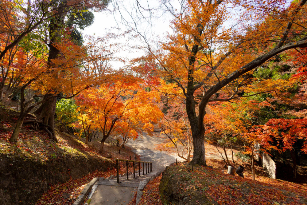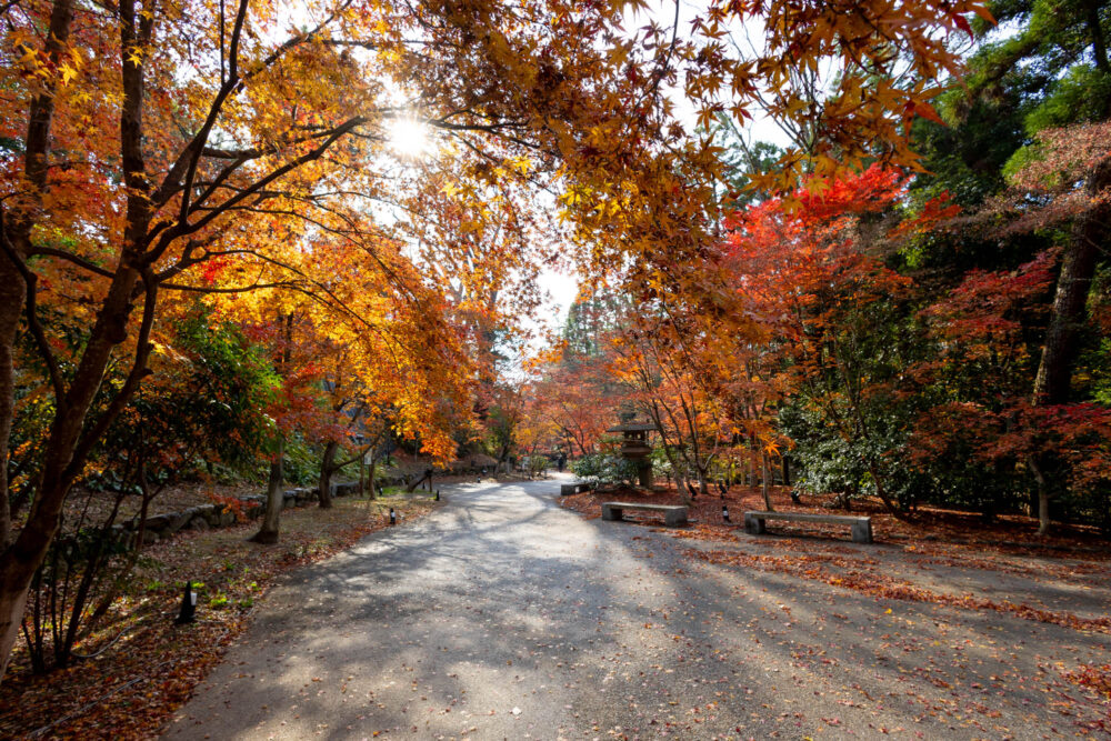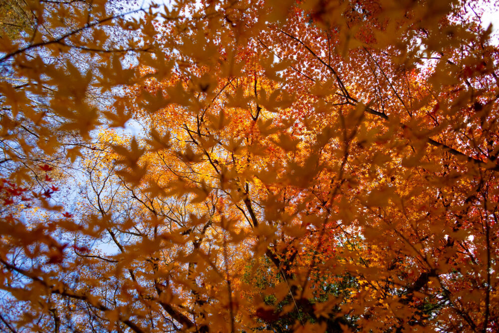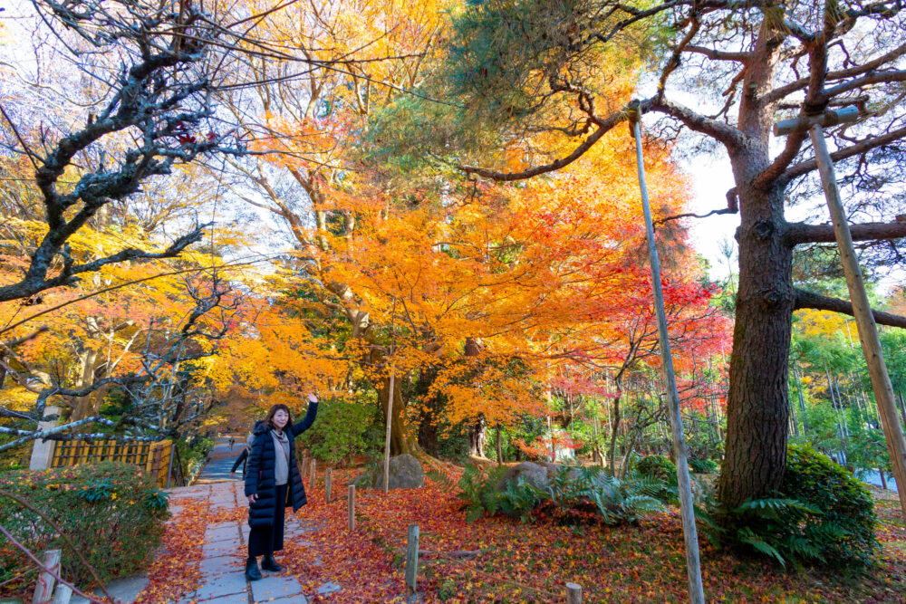 紅葉していますが、少々潤いが足りない感じ。タクシーの運転手さんによると、夏が暑すぎて乾いて紅葉してしまったとのこと。紅葉の寿命も短かったようです。それでもこれだけ観られれば御の字。