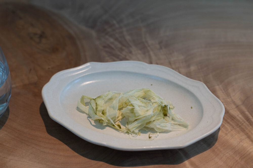 おぼろ昆布の削り出し実演。本当は足で踏みつけて反対を手で持ち削るのだそうですが、実演用に「昆布押さえ機」を特注したとのこと。このようなパフォーマンスも行うことで、昆布の魅力を伝えたいと。1時間たっぷりと時間をかけて、たった10人のためにラーメンを出して、それで1,152円というのは販売促進だからだそうです。こういうの好き。