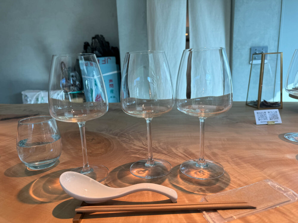羅臼・真昆布・利尻を水出しした昆布出汁3種を、まずはテイスティング。いや、どれもそれぞれに美味くて、でも羅臼が好きかな?
