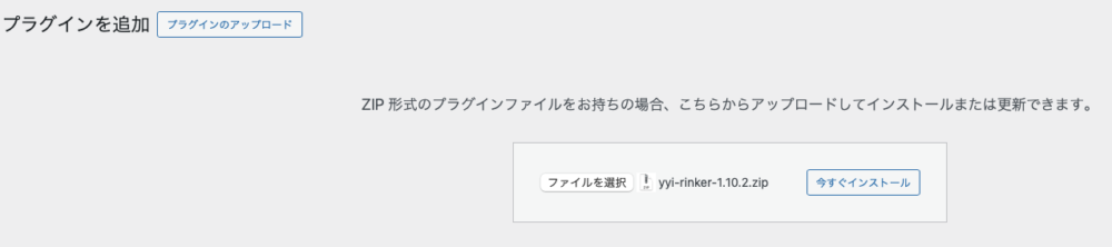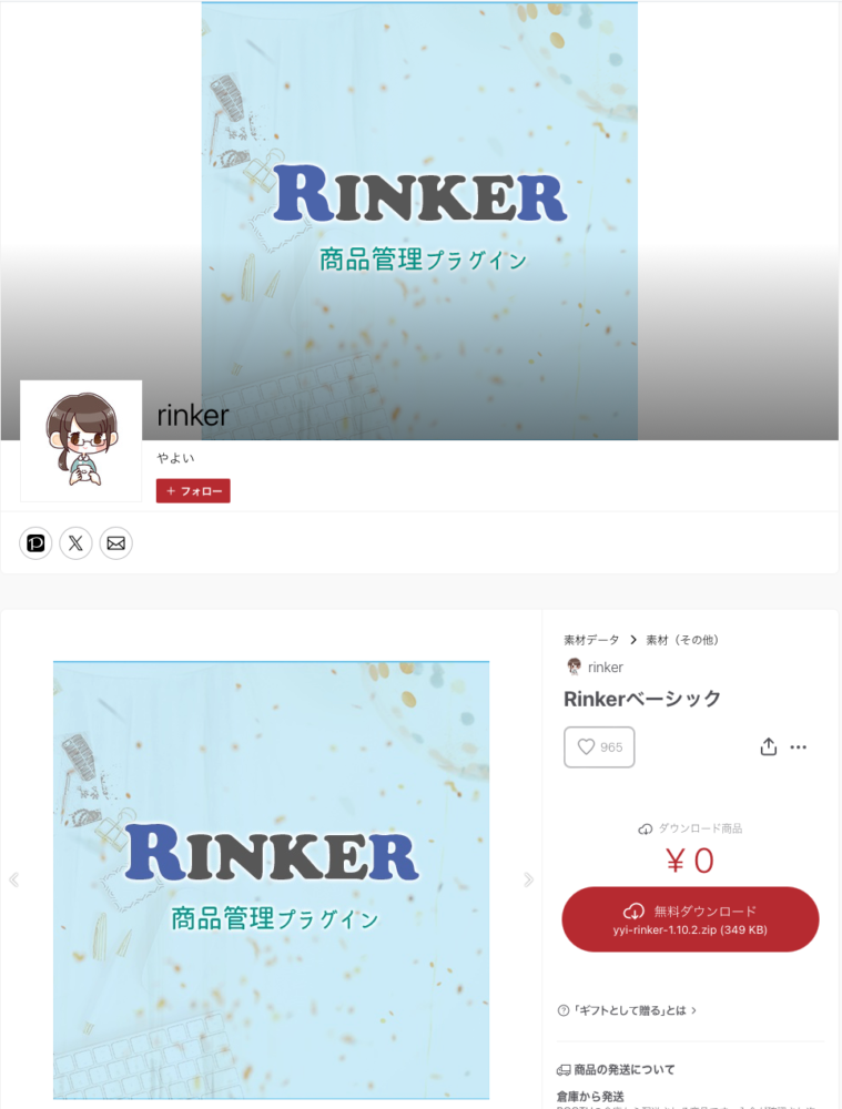 RinkerはWordPress公式プラグインではないので、プラグイン新規追加では検索できません。作者のBOOTHサイトからダウンロードしてインストールします。