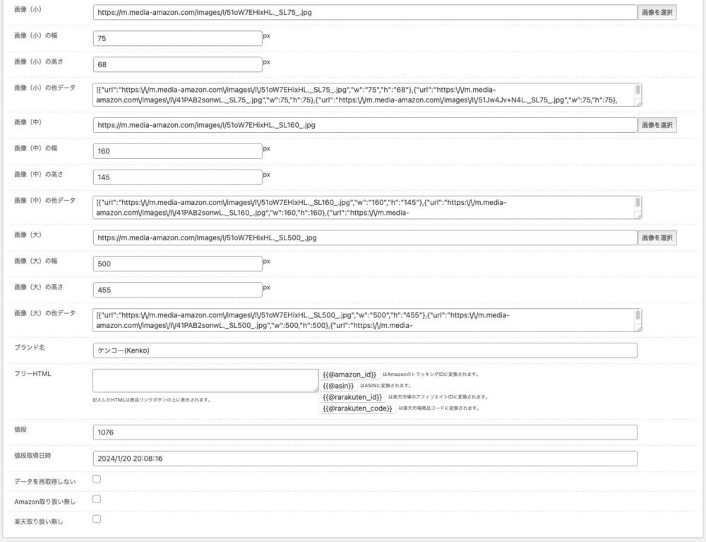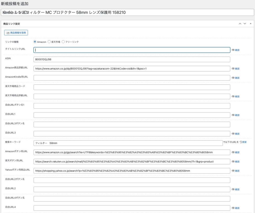 ここでタイトル等を修正すると、商品リンクに反映されます。