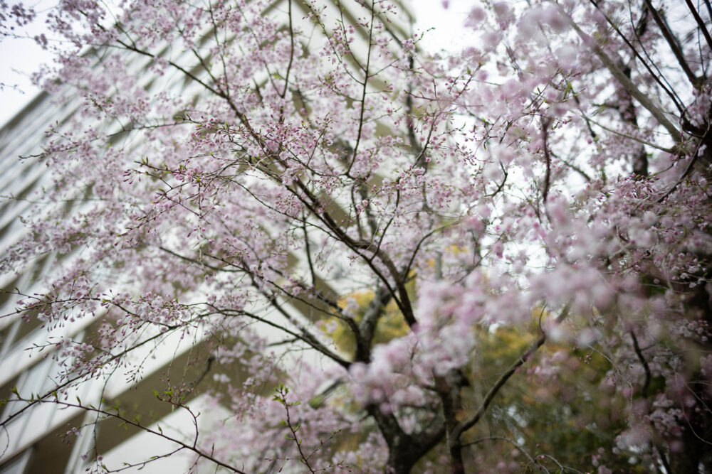 ソメイヨシノ満開、サトザクラはほぼ終了、ヤマザクラはまだ蕾でこれから。「枝垂れ桜はあまり無いよなあ?」と思っていたら、あまり通ることの無い団地内にたくさんありました。可愛らしい花ですね。