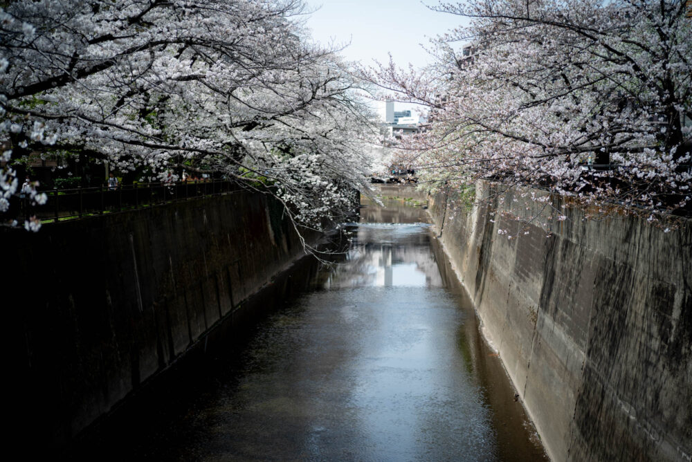 謂わば、有名な目黒川沿いの桜並木の川幅を広くしてのどかにした感じ。人出は多いけれど、比較にならない穏やかさです。あと、お店は全くありません。悪しからず。