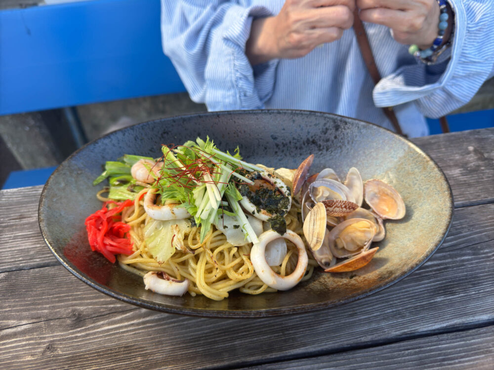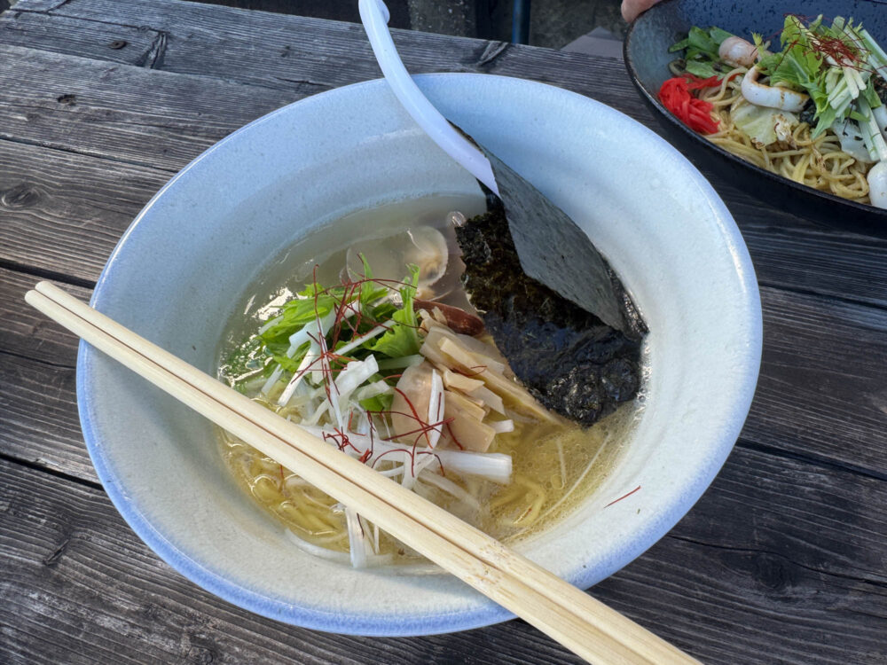 こちらが大当たり!犬を可愛がってくれるし(テラス席)、アサリラーメンは美味いし!