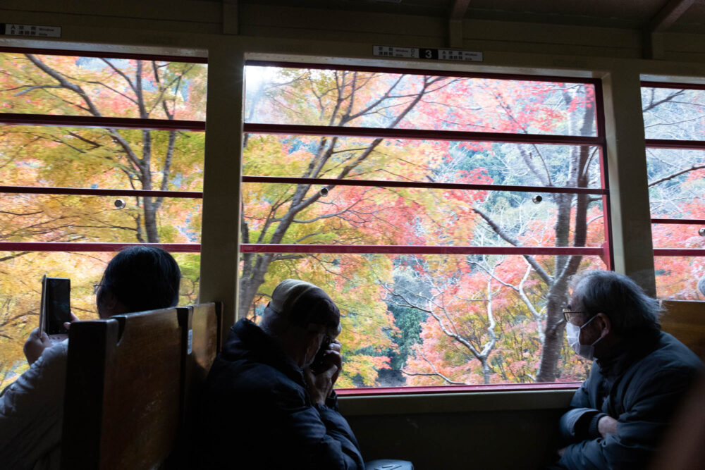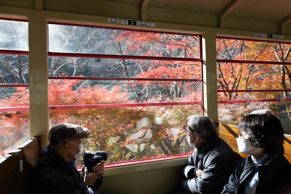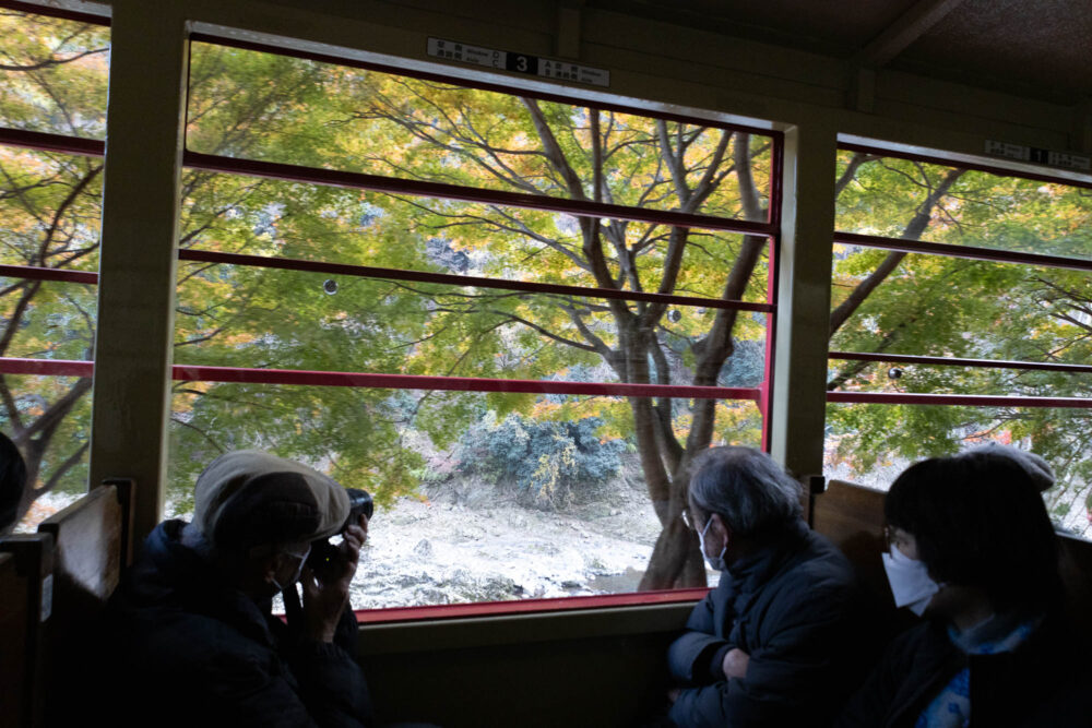 懐かしい木の椅子、木の床。窓全開で寒いけれど、素晴らしい景色です。EOS R+RF24-105mm F4-7.1 IS STMでは、ガタガタ揺れながら走る車両からの風景撮影はなかなか厳しく。しかしキレイ。動画の方が雰囲気が分かります。