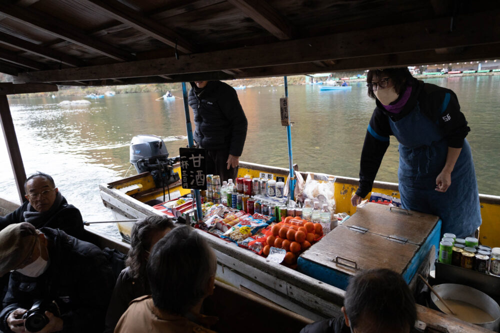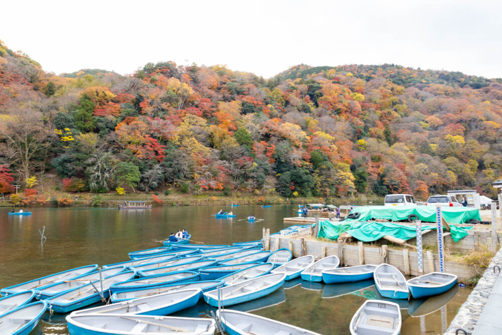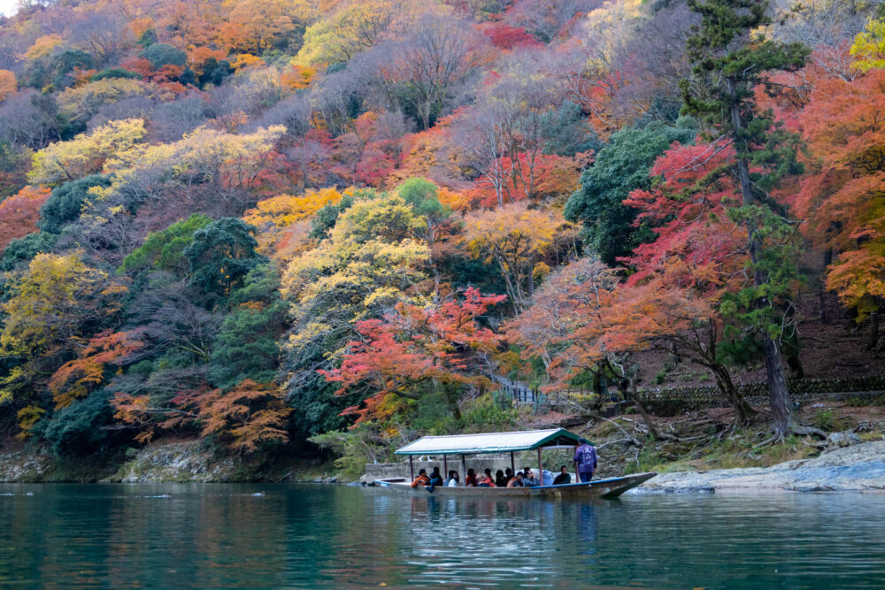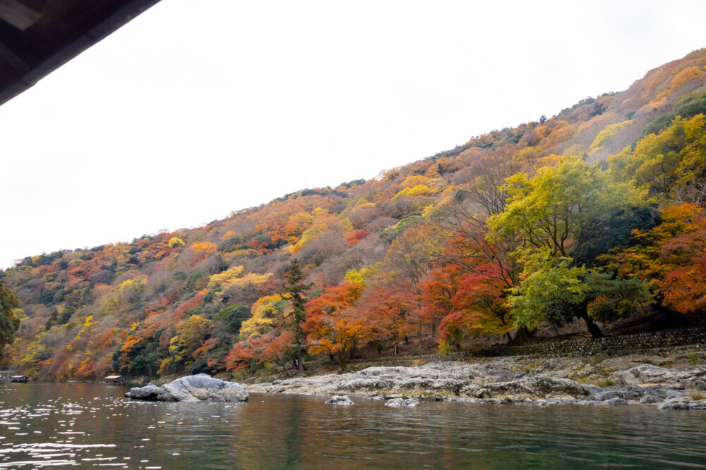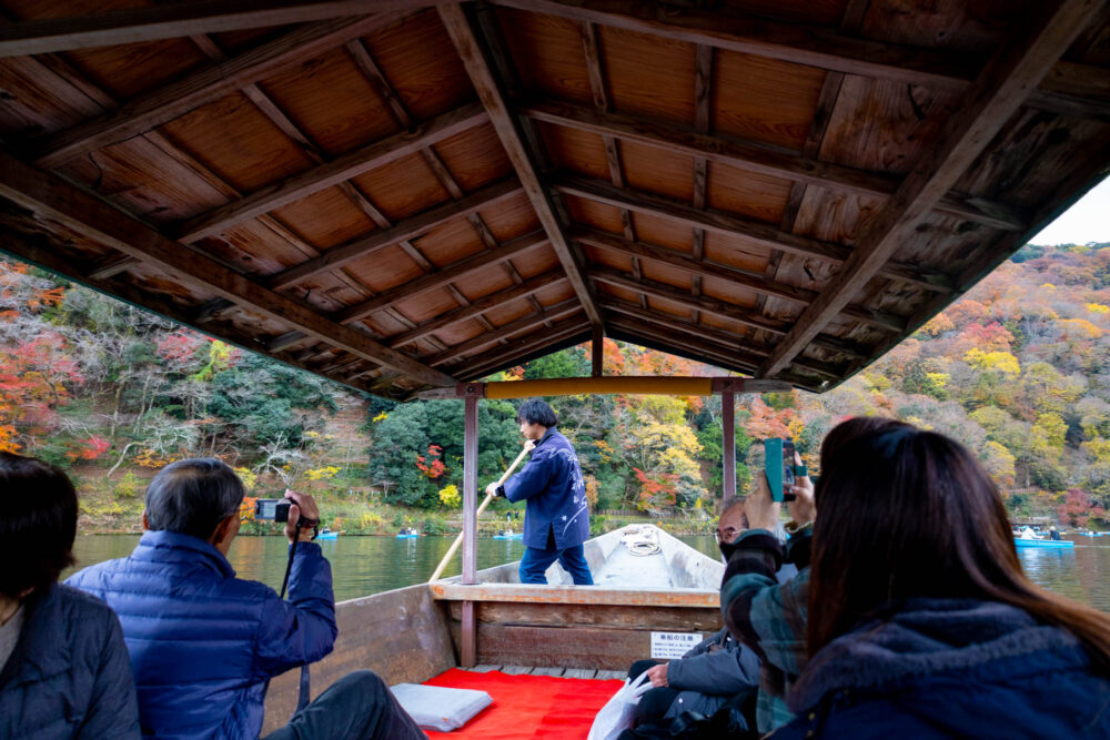- 14時半:ホテルを出発、徒歩20分で渡月橋から屋形船。