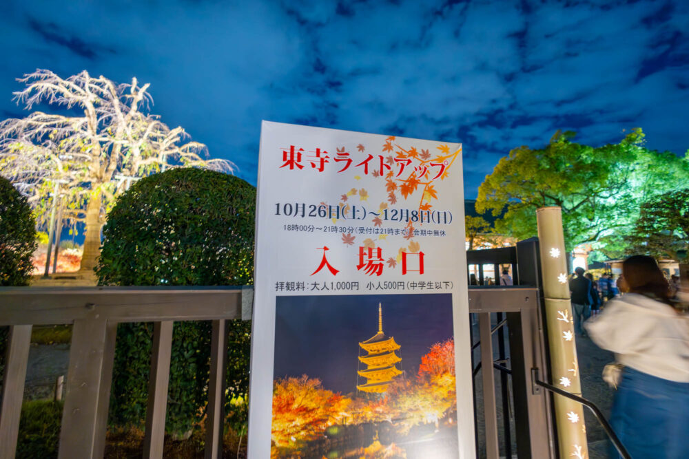 - 20時:駅から徒歩で東寺のライトアップを観に。帰りはタクシー。