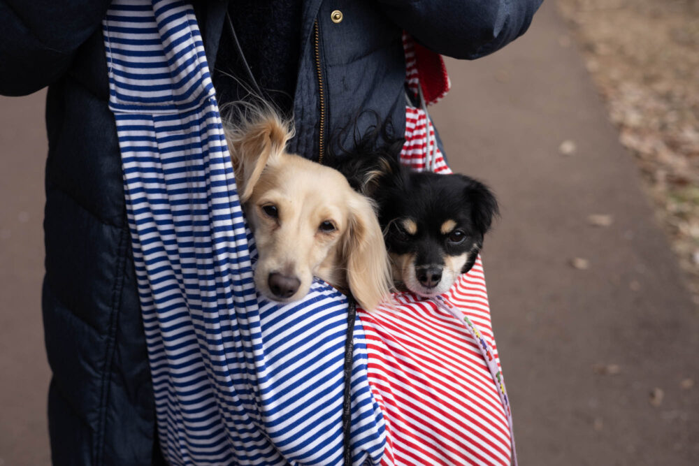 はなミミ、ちょっと疲れてきたのでスリングバッグへ。