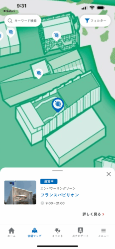 パビリオンや施設名称が、直接地図上にプロットされていないって、使いにくいに決まってますね。