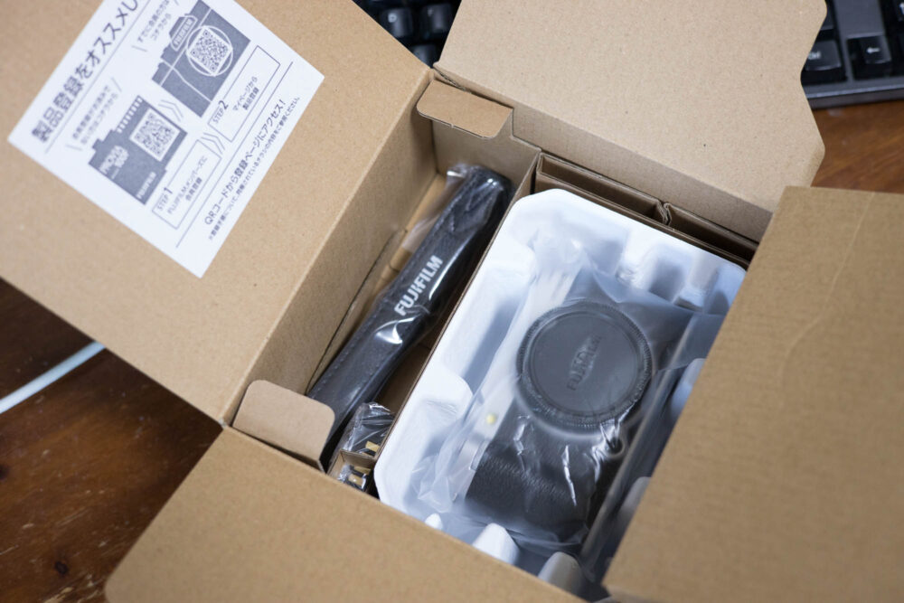 同梱品はバッテリーとストラップのみでした。充電器は付属せずUSB-C充電ですね。