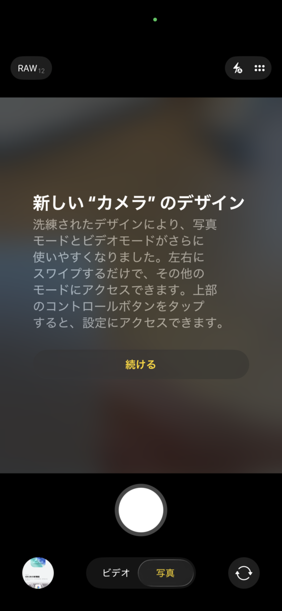 カメラアプリもデザインが新しくなった…ようです?あまり違和感が無いため、使い込んでからのレポートにします。