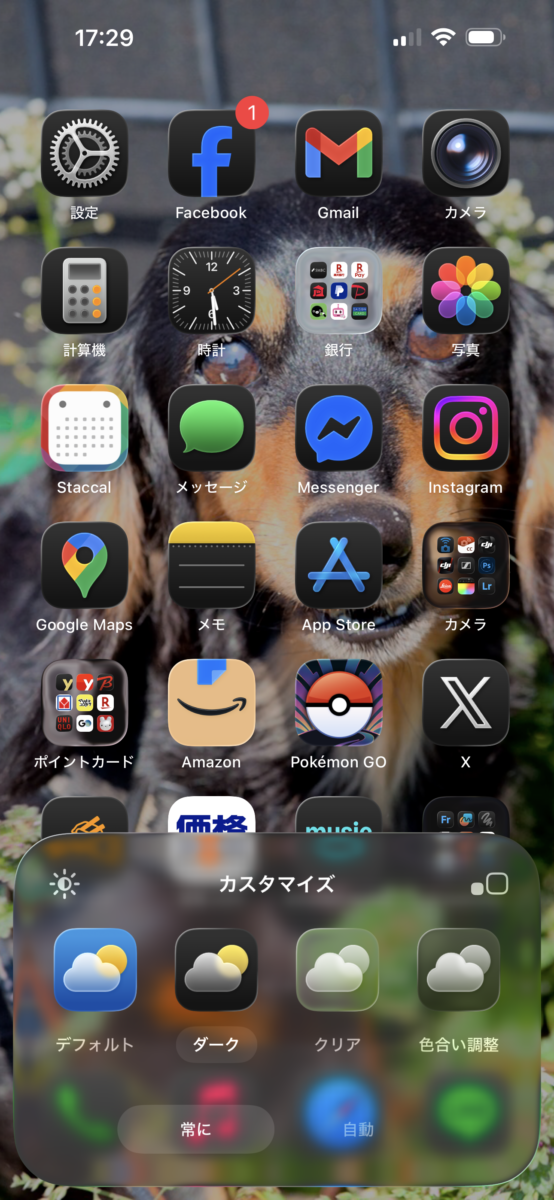 ホーム画面のカスタマイズは「アイコンの無いところを長押しして、カスタマイズボタンをタップ」で行います。