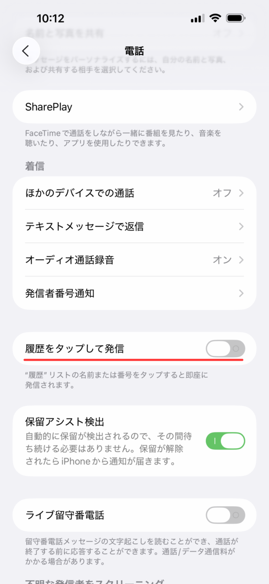 また、着信履歴をタップしてもすぐに発信できず、操作選択画面が表示されるようになっています。