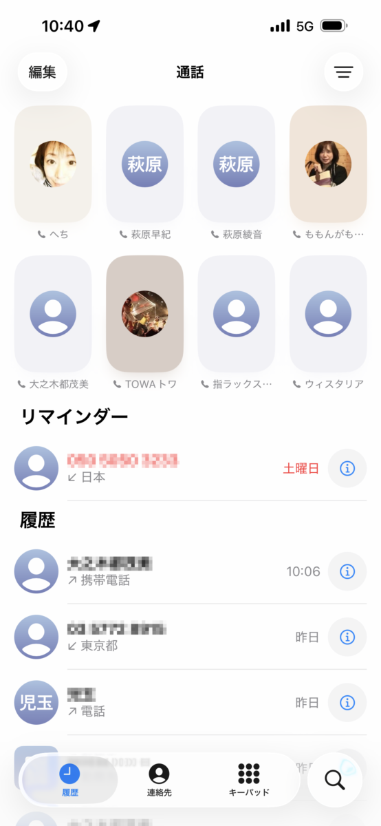 電話帳の「よく使う項目」「履歴」が統合され、ページの行き来が少なくなりました。