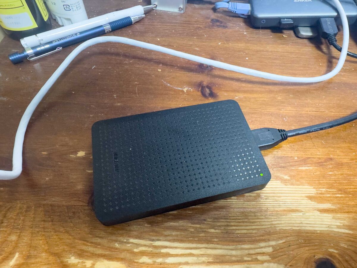 そこに「デイリーバックアップ」として接続していたUSB3.0の1TB SSD。これはもったいない。テレビ録画用Blu-rayレコーダーの外付けディスクなら流用できそうです。