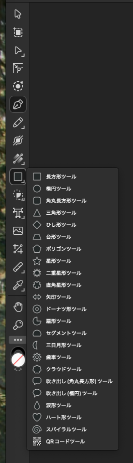 形状ツールは非常に豊富です。QRコードツールって初めて見た気がします。