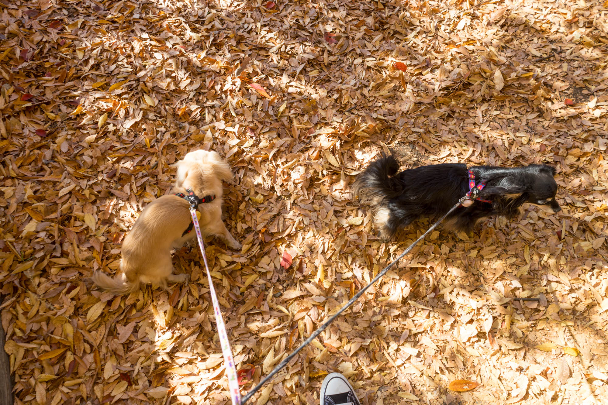 落ち葉をせっせと踏んで歩く犬たち。落ち葉、良い匂いです。ああ、そういえば銀杏の匂いがしなかったなあ。