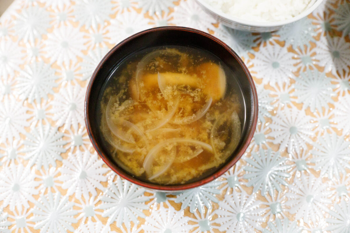 立派な大黒シメジとタマネギスライスの味噌汁。