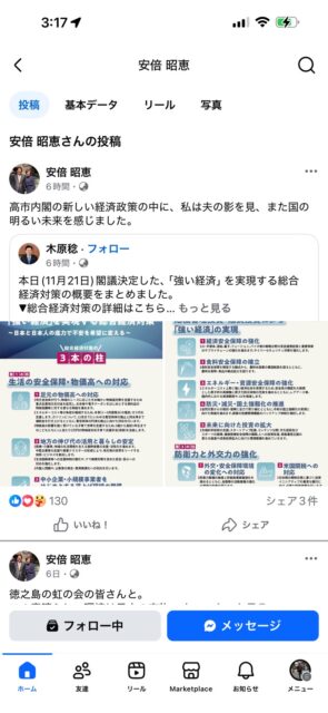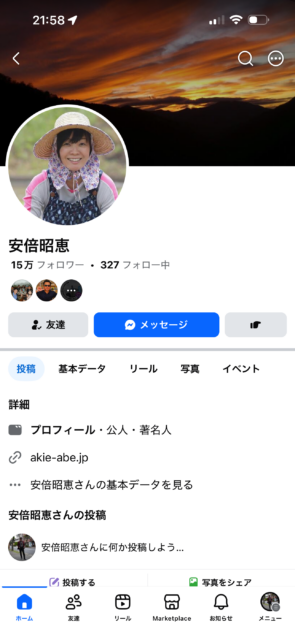 Facebookで安倍昭恵の偽者が暗躍しています。ご注意ください。