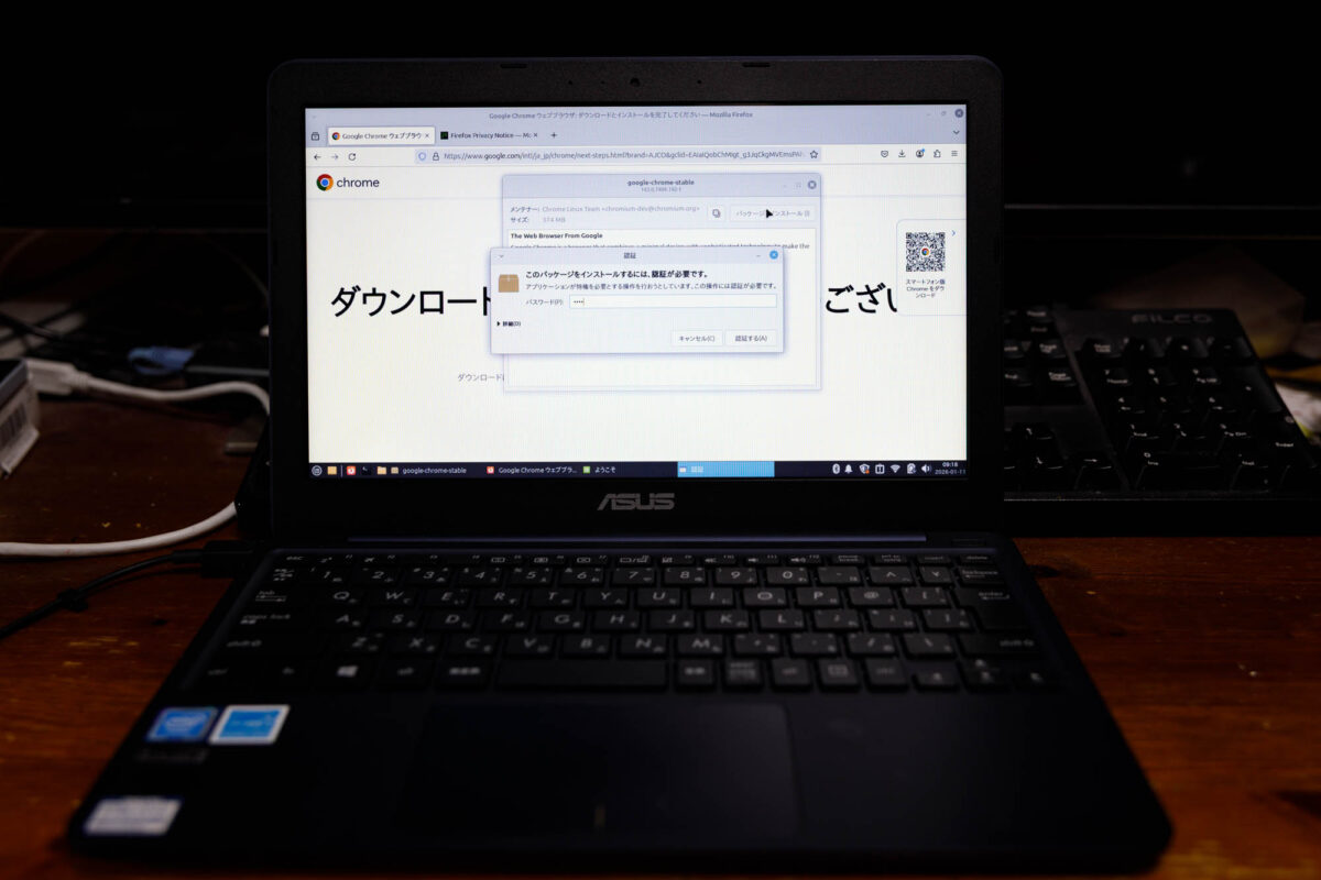 各種アプリインストール時にはパスワードを聞いてきます。MacやWindowsと変わりませんね。