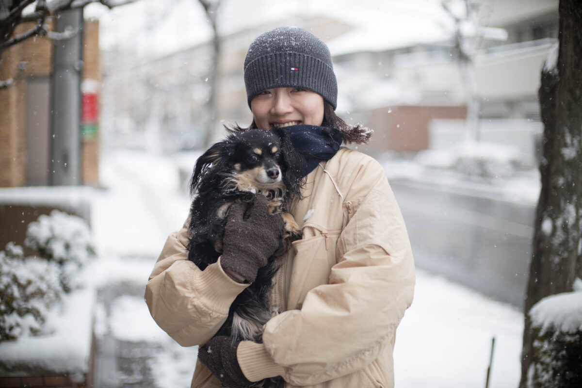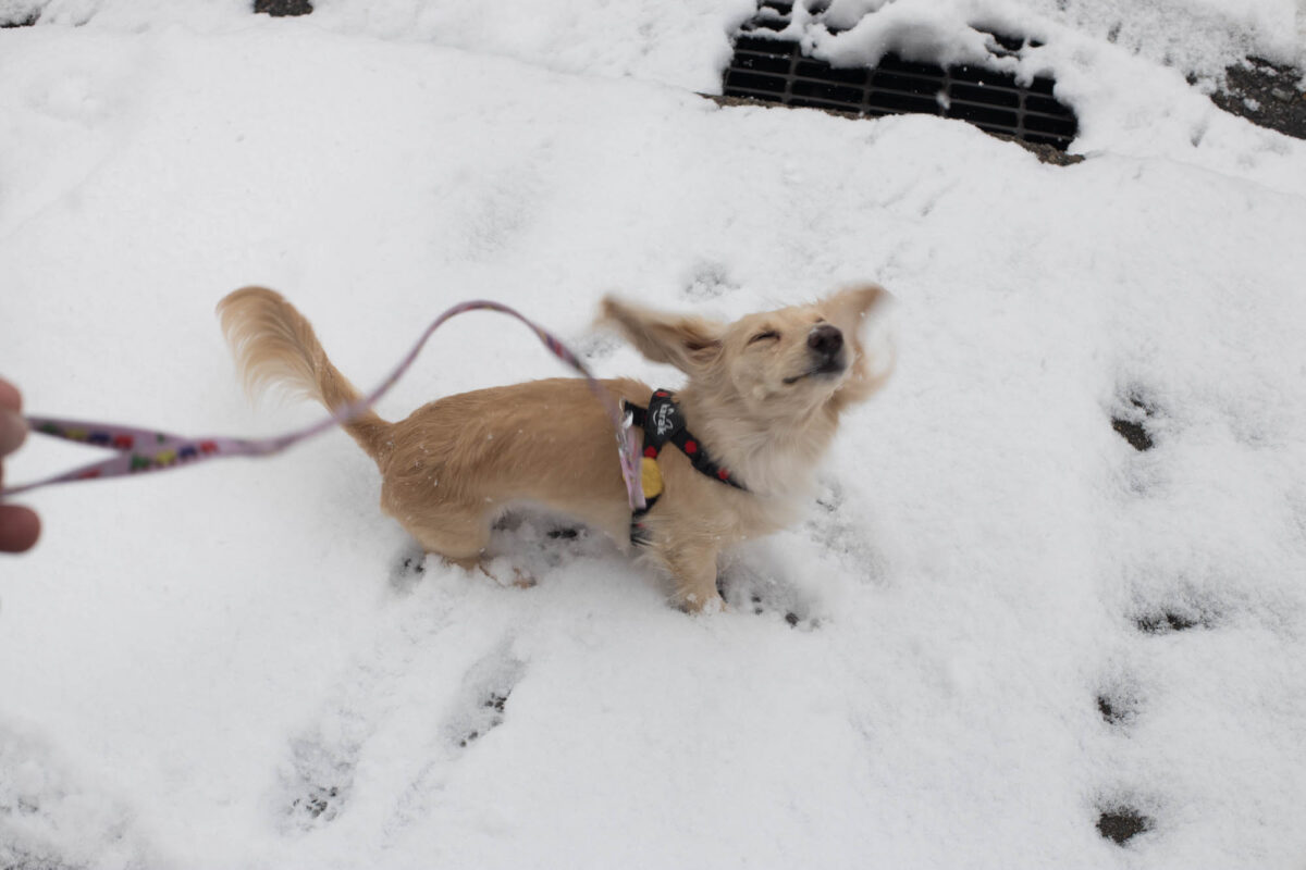 はなも引きずり出されました。犬なのに寒いの大嫌い。