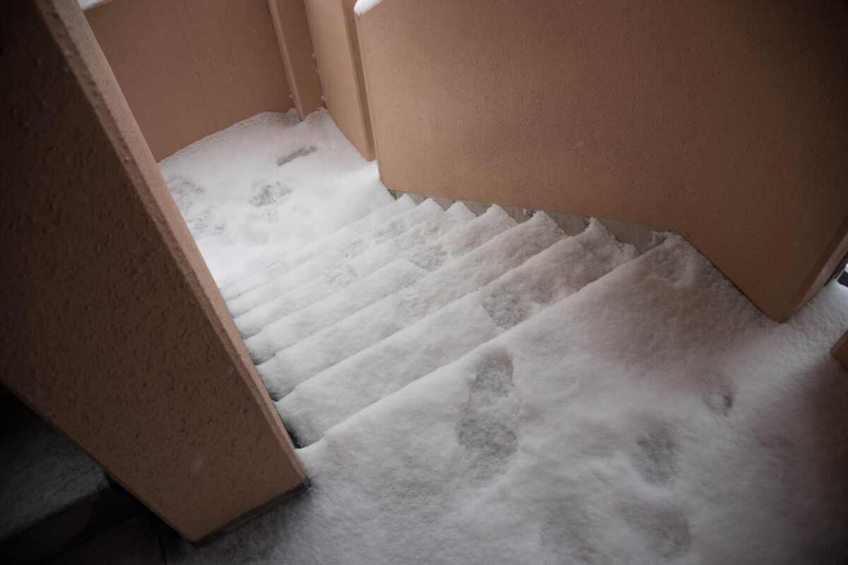 翌日までに歩道・車道はしっかりと溶けましたが、木々や停車中の車の上にはまだまだ積もっています。フロントウィンドウの雪をどけるの、ベチャ雪よりも大変でした。