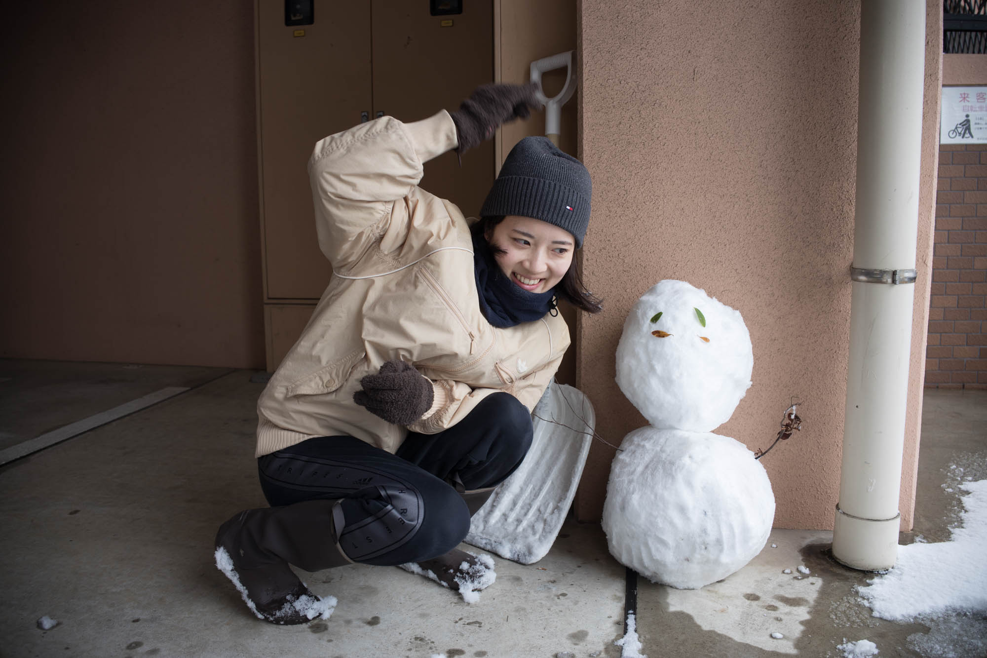 頑張って雪だるまも作った!ちにかく固まらないので大変です。
