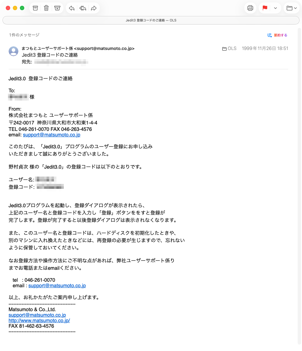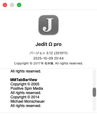 Macで199年から27年間使い続けたJedit。当初は株式会社まつもとでしたが、その後合資会社アートマン弐壱に。
