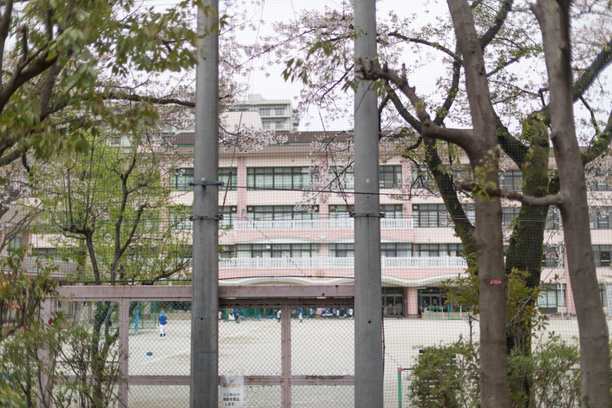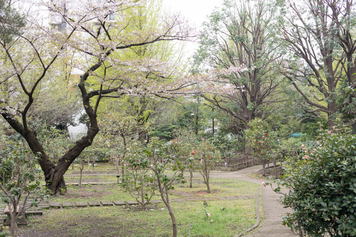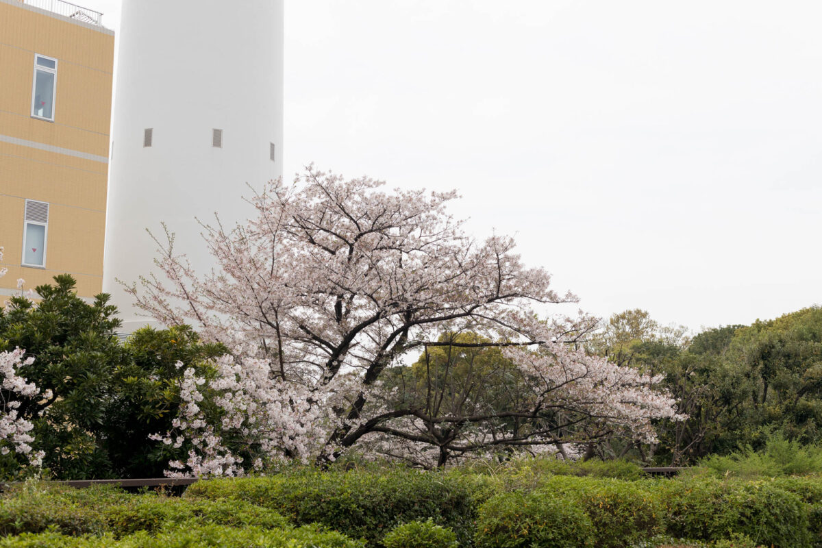 ボタン広場と桜。