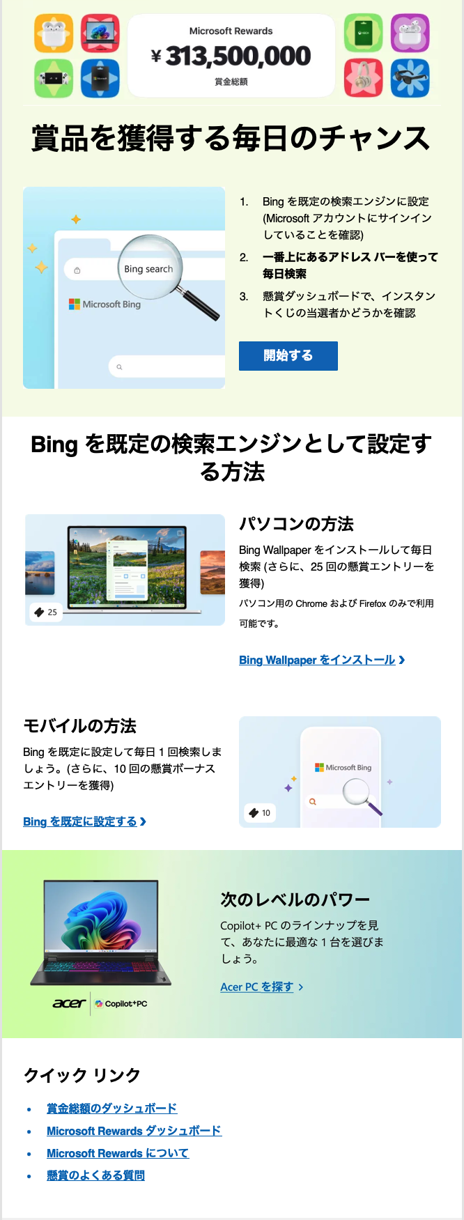 先日も記事にした「Microsoft Rewards」のお知らせが届きました。