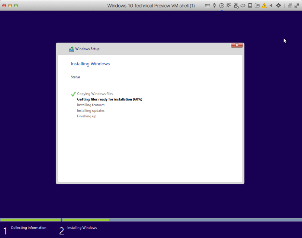 http://kb.parallels.com/en/122745 の2.からWindows 10 Technical Preview VM shellをダウンロードします。
